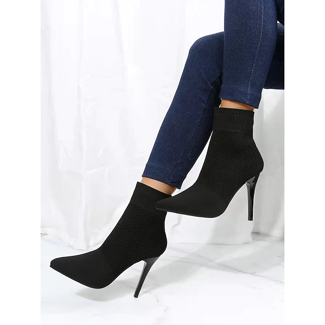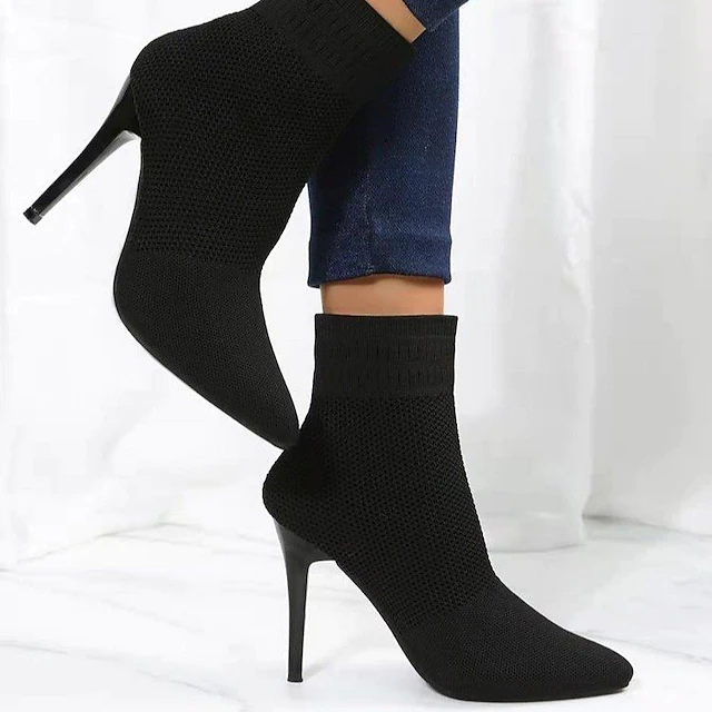 Selling Points 1. Toe Shape: Pointed Toe 2. Season: Winter 3. 2022 Trends: Plus Size 4. Heel Type: Stiletto Heel Specifications Gender: Women'sCategory: BootsStyle: Minimalism, CasualType: Booties Ankle BootsOccasion: DailyToe Shape: Pointed ToeUpper Materials: KnitOutsole Materials: RubberHeel Height(inch): >5Pattern: Solid ColoredSeason: Fall, WinterEU Size: 36:5.5;37:6;38:7;39:8;40:8.5;41:9.5;42:10;43:11Foot Length (cm): 36:23;37:23.5;38:24;39:24.5;40:25;41:25.5;42:26;43:26.5Foot Width (cm): 36:9.06;37:9.25;38:9.45;39:9.65;40:9.84;41:10.04;42:10.24;43:10.442022 Trends: Plus Size, Sexy BootsClosure Type: LoaferHeel Type: Stiletto Heel Photos
