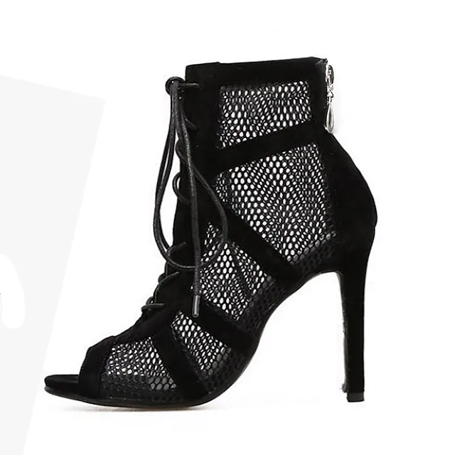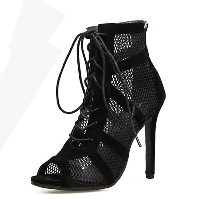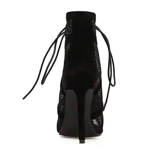Highlights The boots are made of high quality mesh. Breathable and comfortable when wear. The boots with a elegant lines, look refreshing and concise, make your feet look more charming. The women boots suitiable for any daily used, club, party,casual, shopping. They are the best gift for yourself, your friend and lover. Selling Points 1. Toe Shape: Peep Toe 2. Season: Summer 3. 2022 Trends: Plus Size Specifications Gender: Women'sCategory: Boots, SandalsStyle: Casual, SexyType: Booties Ankle BootsOccasion: Outdoor, Club, Daily, PartyActivity: Walking ShoesToe Shape: Peep ToeUpper Materials: NylonOutsole Materials: RubberHeel Height(inch): 3-4Embellishment: Lace-upPattern: Solid ColoredSeason: SummerEU Size: 36:5.5;37:6;38:7;39:8;40:8.5;41:9.5;42:10;43:10.5Foot Length (cm): 36:23;37:23.5;38:24;39:24.5;40:25;41:25.5;42:26;43:26.5Foot Width (cm): 36:9.06;37:9.25;38:9.45;39:9.65;40:9.84;41:10.04;42:10.24;43:10.43Closure Type: Lace-up2022 Trends: Plus SizeHeel Type: Stiletto Heel Photos